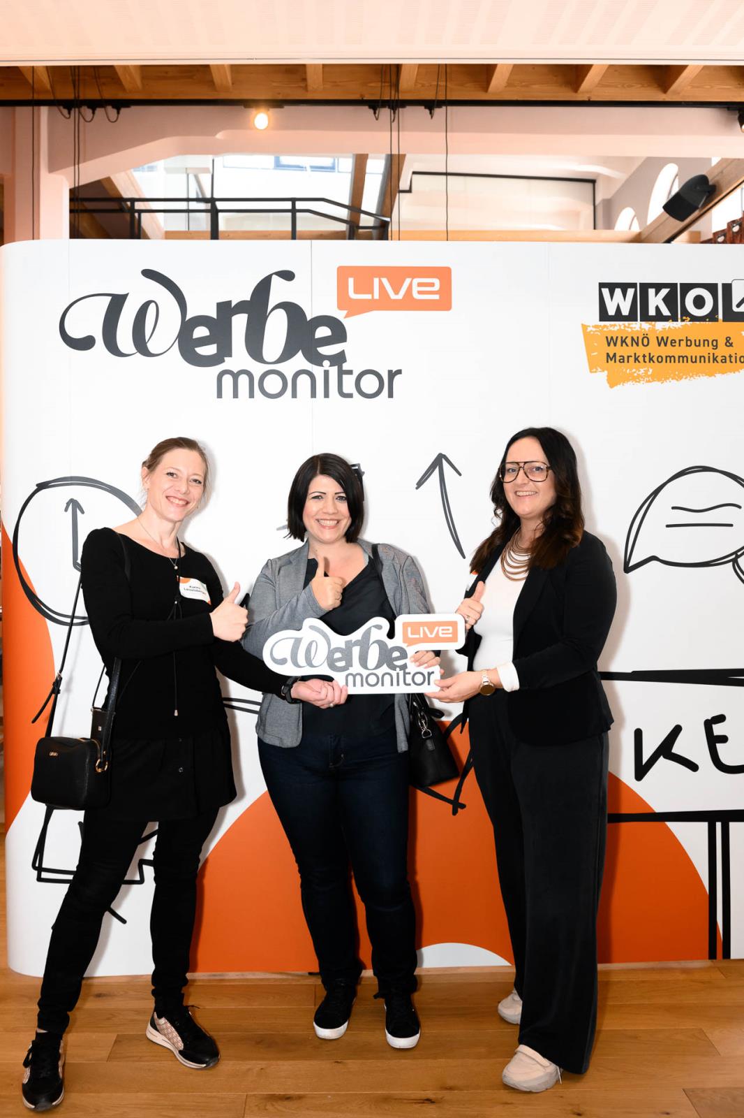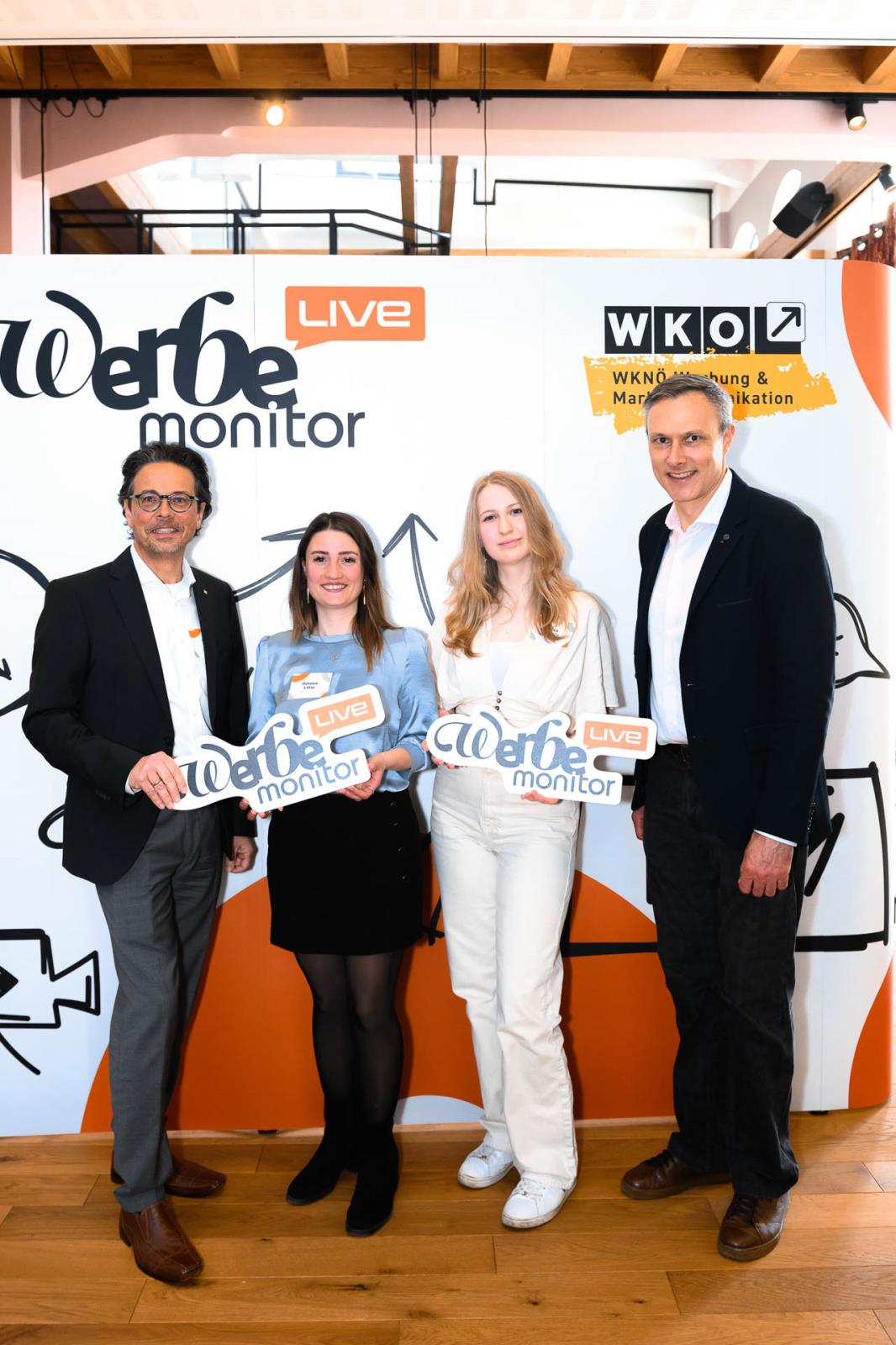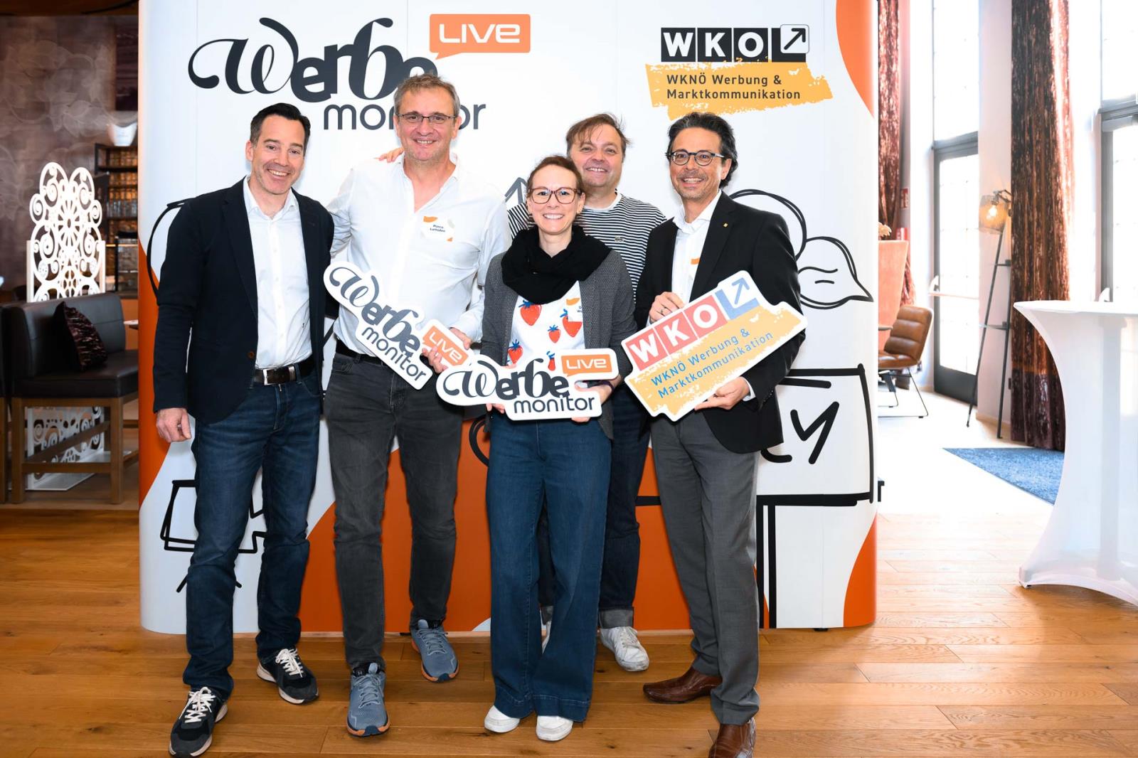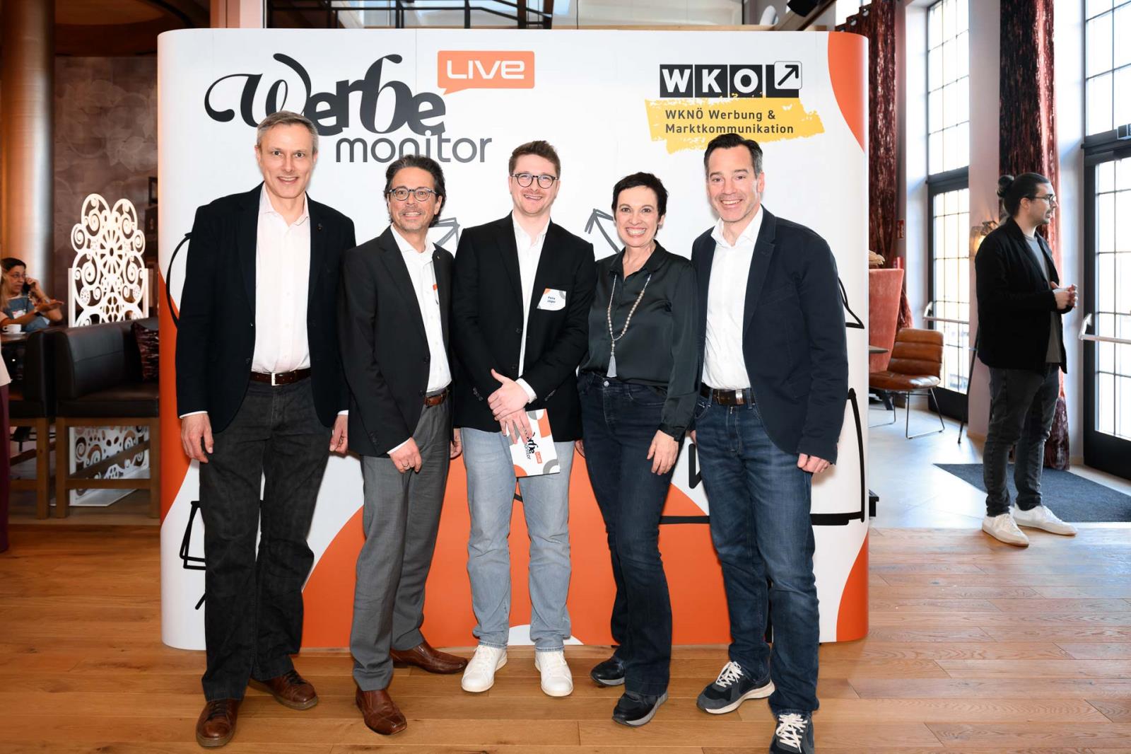 Werbemonitor LIVE, ein Format zugeschnitten auf die Werbe- und Kommunikationsbranche mit: Fachgruppenobmann Andreas Kirnberger, Fachgruppengeschäftsführer Clemens Grießenberger, Ausschuss-Mitglied Andreas Roffeis, Fachgruppenobmann-Stv. Timm Uthe, Julia Lipp, Ausschuss-Mitglied Herbert Sojak, Vanessa Wurster, Sebastian Podesser, Kerstin Oberzaucher, Ausschuss-Mitglied Bernhard Dockner, Marco Lumsden, Max Niederschick, Richard Weiretmayr, Werbemonitor-Chefredaktion Sabine Wolfram und Fachverbandsobmann Jürgen Bauer (v. l.)