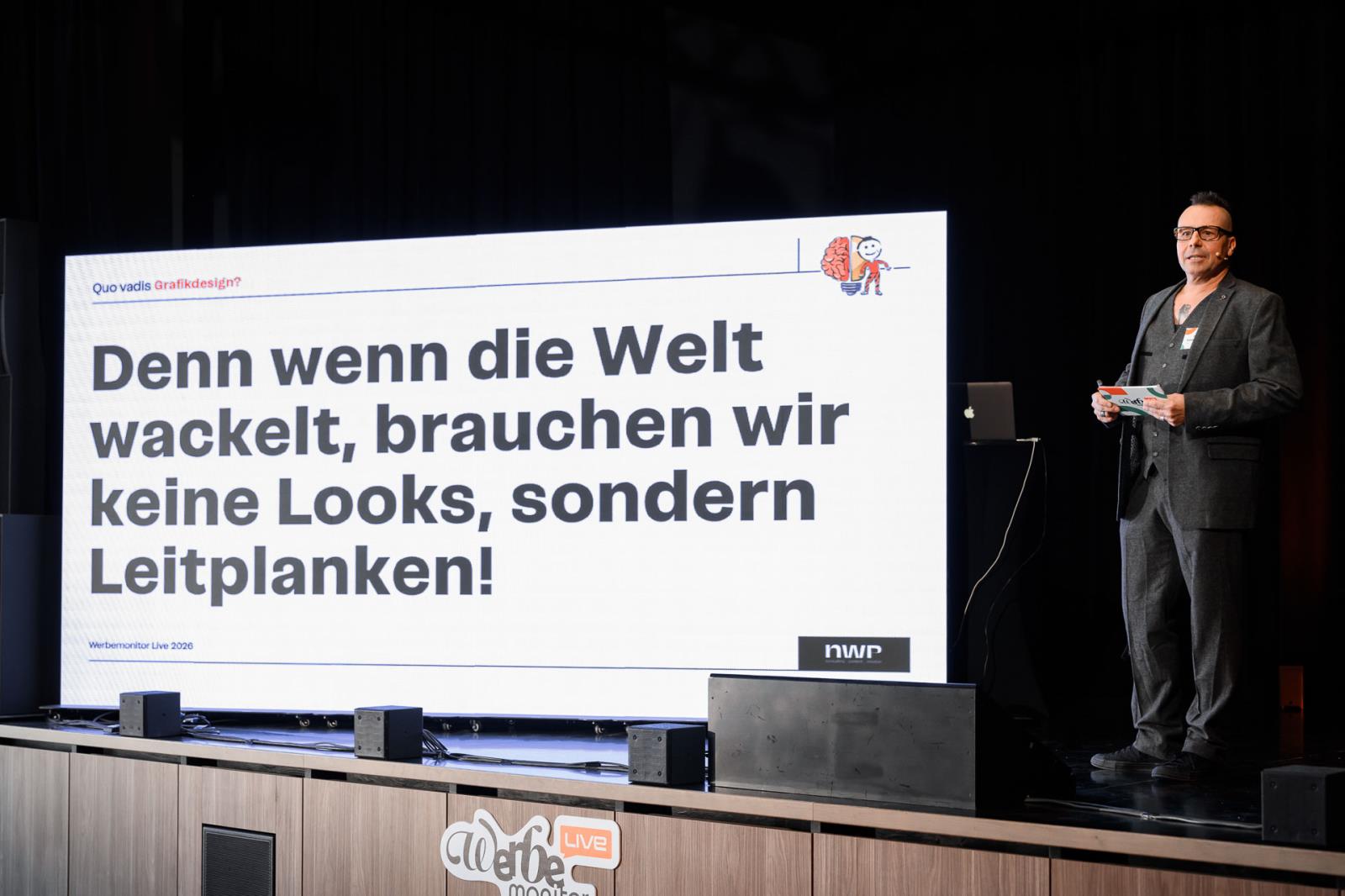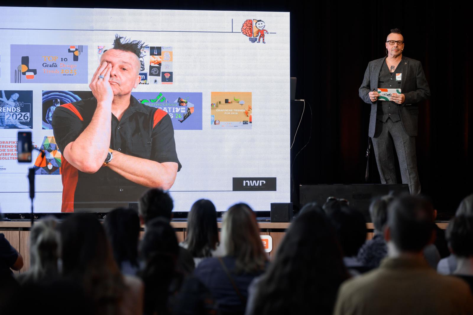 In der zweiten Session verabschiedete sich Max Niederschick (nwp consulting_content_creation) von reinen Trendlisten und richtete den Blick auf das, was Grafik und Gestaltung tatsächlich prägen wird: Strukturen, Prozesse und Haltungen. Julia Lipp (Die Fitnesstrainerin) sprach mit Begeisterung über Gesundheit, Energie und nachhaltige Leistungsfähigkeit in der Selbstständigkeit - praktische Tipps inklusive. Internationale Kreativtrends standen schließlich im Mittelpunkt der Präsentation von Marco Lumsden und Richard Weiretmayr (Lumsden & Friends), die einen Überblick über ausgezeichnete Kampagnen der Cannes Lions gaben.