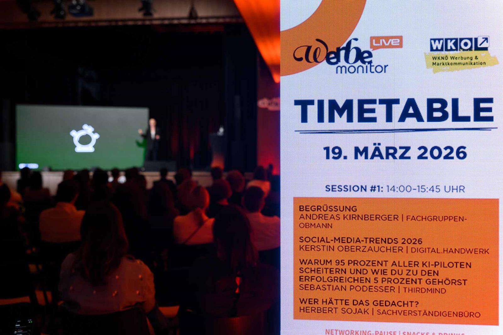Am 19. März 2026 fand die NÖ-Fachkonferenz für Werbung bereits zum dritten Mal statt. Der Werbemonitor LIVE, veranstaltet von der WKNÖ Fachgruppe Werbung und Marktkommunikation, brachte zahlreiche Branchenvertreterinnen und Branchenvertreter in der Spitzenfabrik in St. Pölten zusammen. Das Programm traf einmal mehr den Nerv der Branche, daher war die Veranstaltung bereits im Vorfeld vollständig ausgebucht.
